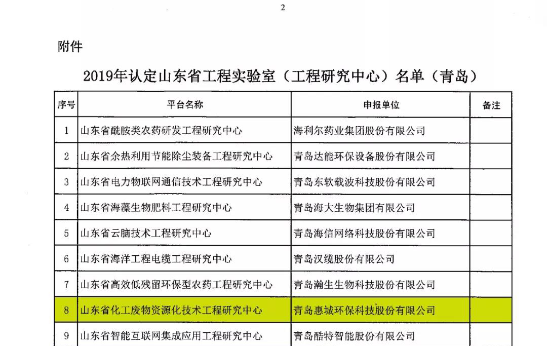 日前,根據(jù)山東省發(fā)展和改革委《關(guān)于公布2019年認定山東省工程實驗室(工程研究中心)名單的通知》(魯發(fā)改高技〔2019〕360號)發(fā)布文件,我公司申報的省級工程研究中心獲批并被認定為山東省化工廢物資源化技術(shù)工程研究中心。[ 查看更多 ]
