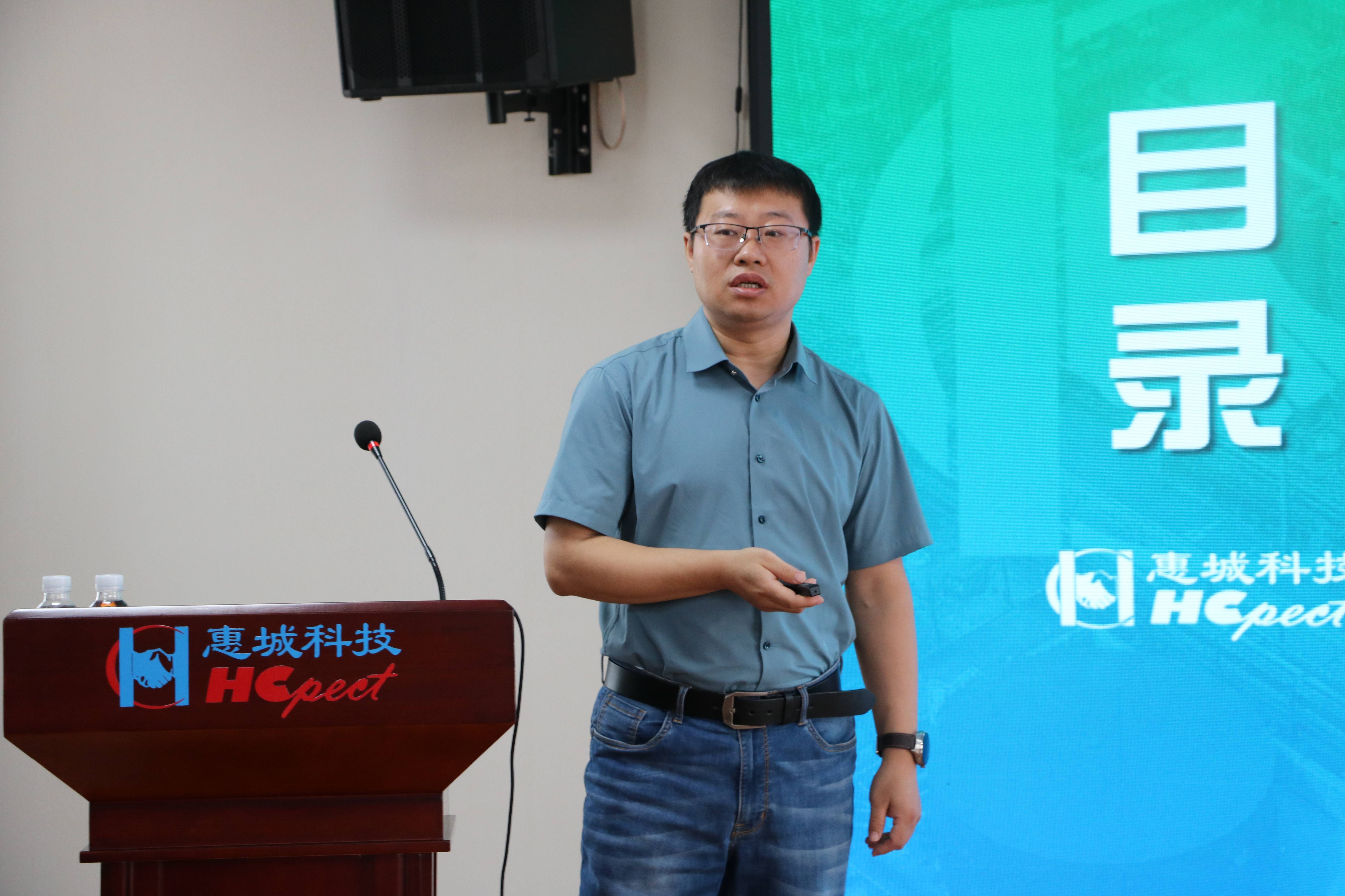 惠城環(huán)?偨(jīng)理助理李世鵬為新員工培訓(xùn)“集團(tuán)發(fā)展歷程、企業(yè)文化、職場新人角色轉(zhuǎn)換等”